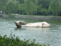 杭州の観光地、西湖という湖。でかい。船に乗って、3つくらいある島を廻る。一番右の水牛オブジェは、絵葉書になるほどの有名なものらしい。