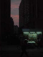 ビルとビルの間から見えた、夕焼け。夕焼けは世界共通で綺麗。バスの中から撮った。