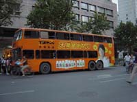 バス。二階建てもあるよ。あっちのバスは日本よりも広告色が強かった。そして派手。1元(15円くらい)で乗れます。