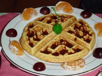 姉ちゃんと二人で行った喫茶店ででたワッフル。周りはいいが、まんなかのチェリーはどういうことだ。しかもこわごわ割ってみたら、種がなかった…こわ〜。
